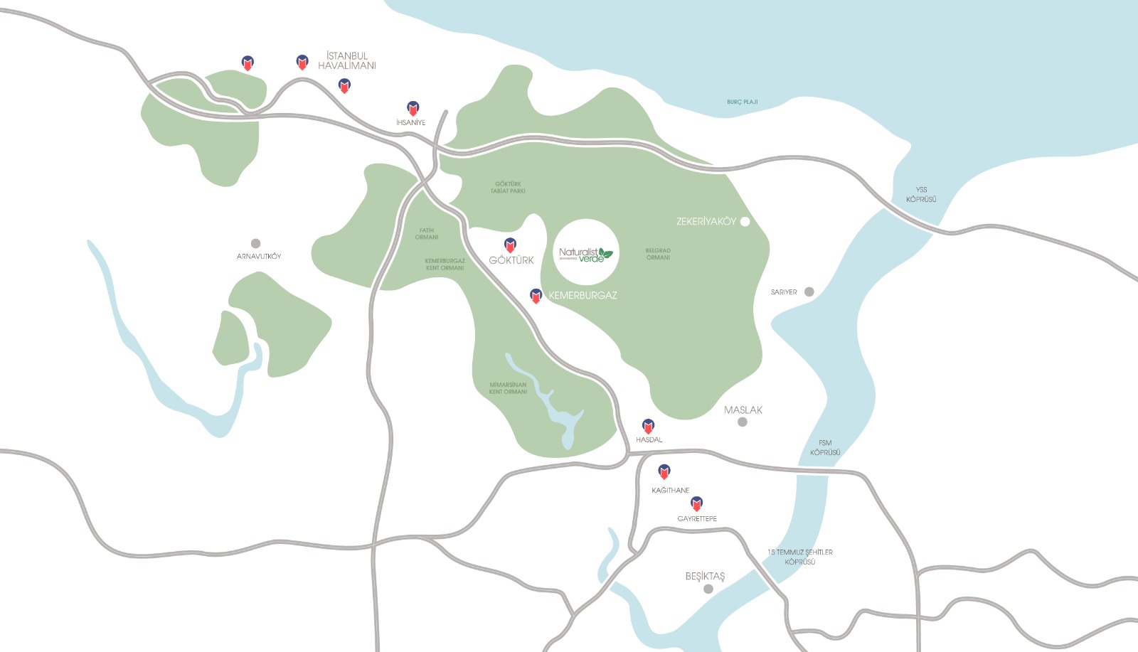 Kemerburgaz‘ın en seçkin lokasyonunda bulunan Naturalist Verde projesine yakın okulları, hastaneleri ve alışveriş merkezlerini inceleyebilirsiniz.